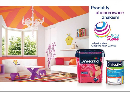 Śnieżka Satynowa oraz Śnieżka Supermal® Emalia Akrylowa, jako pierwsze farby na polskim rynku, otrzymały certyfikat KidZone. Znak Jakości KidZone pod patronatem Rzecznika Praw Dziecka ma na celu uhonorowanie marek, które w codziennych działaniach dążą do osiągania najlepszej jakości i wysokiego poziomu bezpieczeństwa swoich produktów oraz wprowadzają innowacyjne rozwiązania pro-dziecięce.