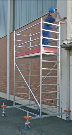 • stabilizator teleskopowy z wbudowanym elementem przesuwnym, który umożliwia łatwe przesuwanie zmontowanego rusztowania w tym np. także dosunięcie do ściany.